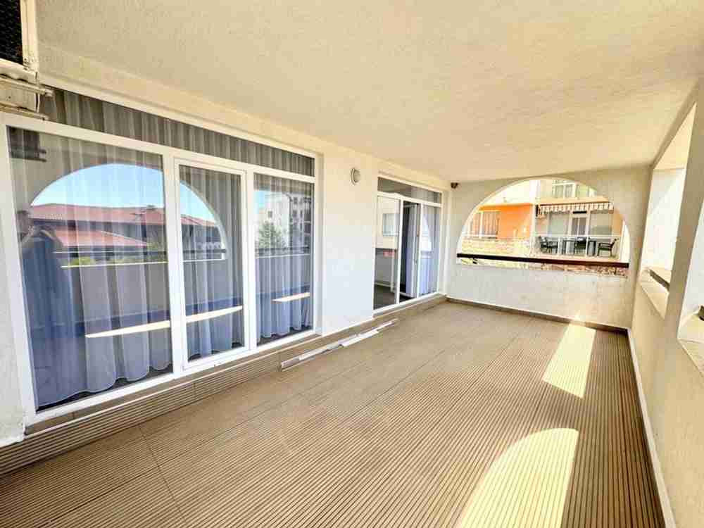 Описание: Недвижими имоти "РИЧ" Ви предлага просторен панорамен апартамент с гледка море на 200 метра от плажната ивица. Югоизточно изложение. Дневна с кухненска част. Две спални. Антре. Санитарен възел. Голяма тераса пред двете стаи. Необзаведен. Трети етаж. Комплексът предоставя на собствениците и ползвателите открет басеин със зона за отдих, бар, кафе, магазин, спа център, салон за красота, масажен кабинет, сауна, джакузи, фитнес център, детска площадка и голям паркинг. Рецепция. Акт 16. Целогодишна поддръжка и охрана с видеонаблюдение. Годишна такса 600 евро. Имотът е удобен както за целогодишно, така и за ваканционно обитаване. | |